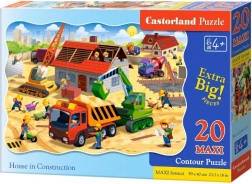 Kolorowe puzzle dla dzieci z motywem domu na budowie zawierają 20 dużych maxi elementów, idealnych dla małych rączek. Po ułożeniu powstaje obrazek o wymiarach 59 × 40 cm. Wysoka jakość wykonania i intensywne kolory wspierają koncentrację, cierpliwość oraz rozwój wyobraźni dzieci.