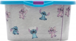 Dziecięcy pojemnik do przechowywania ozdobiony jest wesołymi postaciami Stitch i Angel na pokrywie oraz bokach, co czyni z każdej przestrzeni do przechowywania zabawny dodatek.