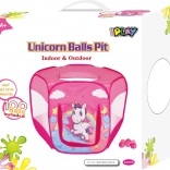 Ten wesoły namiot z motywem jednorożca zamieni każdy dzień w przygodę. Miękkie plastikowe piłeczki rozwijają małą motorykę, koordynację ręka–oko oraz percepcję sensoryczną, a bezpieczna, zamknięta przestrzeń wspiera samodzielną zabawę i wspólne harce.