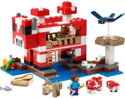 Wejdź do świata LEGO Minecraft i zbuduj duży dom w kształcie grzybo‑krowy z ogródkiem pełnym pszenicy i grzybów. Oprócz Steve’a spotkasz czerwoną i brązową grzybo‑krowę, cielątko, trójkolorowego kota oraz atakującego phantoma. Otwórz wnętrze, odkryj wyposażenie i wyrusz na wyprawę po łupy.