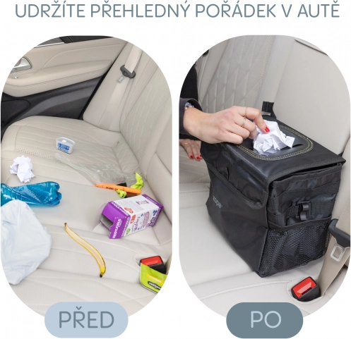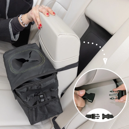 Utrzymuj swój samochód w czystości i porządku dzięki temu praktycznemu koszowi na śmieci, wykonanemu z wodoodpornego materiału. Oferuje dużą pojemność i łatwą pielęgnację dzięki wyjmowanej wewnętrznej przegrodzie.