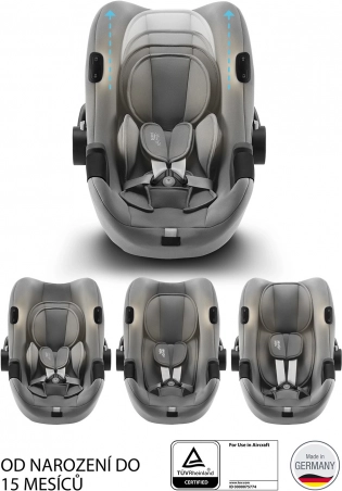 Fotelik można łatwo zamocować w samochodzie za pomocą pasów bezpieczeństwa lub bazy Flex Base iSense. Umożliwia ona obrócenie nosidełka o 180° i ustawienie w sześciu pozycjach, co zapobiega niebezpiecznemu nachyleniu. Ergonomię fotelika można dopasować do wielkości dziecka, a tapicerki wykonano z miękkich tkanin dla większego komfortu.