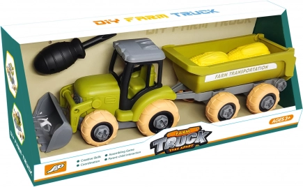 Wkręcany traktor z ładowaczem i przyczepą, 27 cm. Rozwija zmysł techniczny i kreatywność, wysokiej jakości plastik, dziecięcy śrubokręt w zestawie.