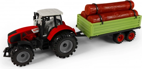 - Realistyczny zestaw – traktor + przyczepa z kłodami
