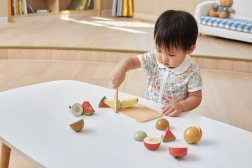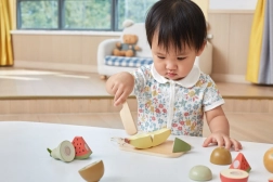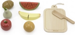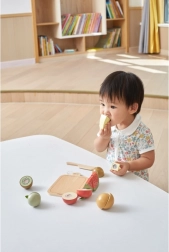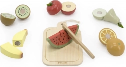 Dzięki temu zestawowi drewnianych owoców dzieci mogą cieszyć się godzinami zabawy i jednocześnie się uczyć. Drewniany nóż pozwala bezpiecznie kroić i łączyć owoce według własnej wyobraźni.