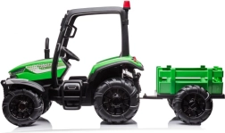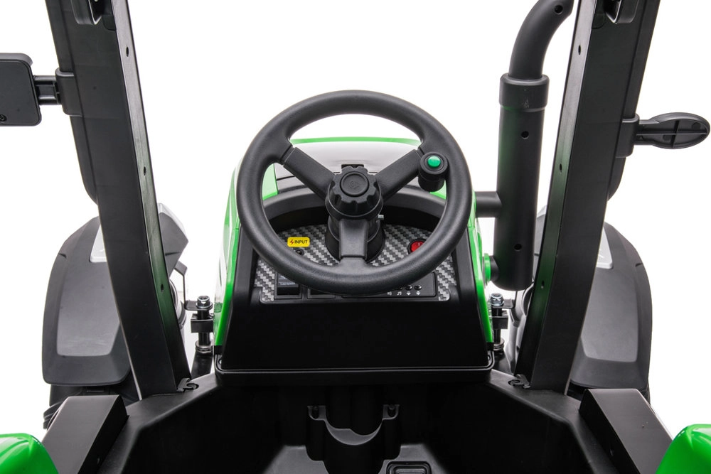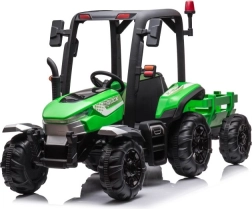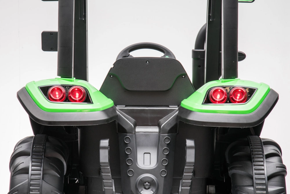 Ten traktor na akumulator został zaprojektowany dla dzieci, które uwielbiają odkrywać świat traktorów. Zielone i czarne wykończenie kolorystyczne wraz z wytrzymałymi kołami zapewnia długą żywotność i dopasowanie do różnych terenów.