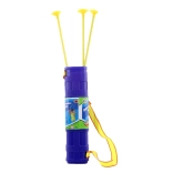 Ten kompletny zestaw dla małych łuczników zawiera wszystko, czego dzieci potrzebują do bezpiecznego treningu celowania: plastikowy łuk o długości 70 cm, 3 strzały z przyssawkami, kołczan na strzały na ramię oraz kolorową tarczę. Dzięki przyssawkom strzały pewnie trzymają się gładkich powierzchni, więc zabawa sprawdzi się zarówno w pokoju dziecięcym, jak i w ogrodzie.