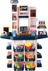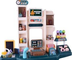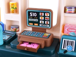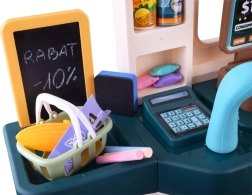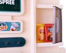 Zestaw oferuje realistyczne elementy do zaawansowanej zabawy w sklep. Dzieci mogą używać przenośnego skanera kodów i ustawiać się w kolejce jak w prawdziwym supermarkecie.