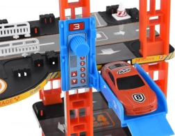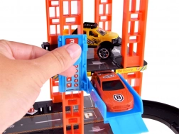 Wyjątkowa winda umożliwia łatwe przemieszczanie samochodów między piętrami, co dodaje interaktywności i dynamiki zabawie.
