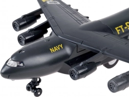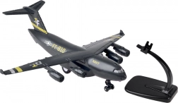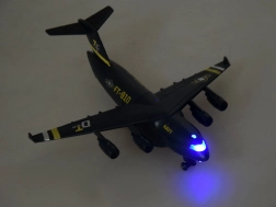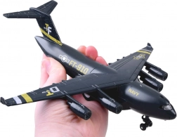 Ten model wojskowego samolotu transportowego jest precyzyjnie wykonany w czarnym kolorze ze złotymi i srebrnymi znakami. Wyposażony jest w mechanizm napędu wstecznego oraz efekty dźwiękowe, co zapewnia zabawę i pobudza rozwój dziecięcej wyobraźni.
