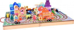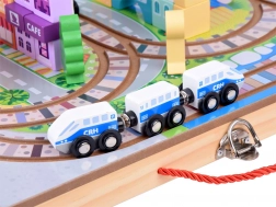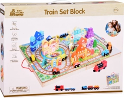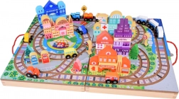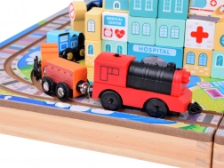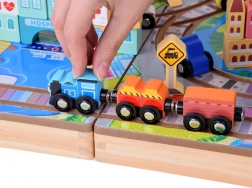 Odkryj fascynujący świat drewnianych budowli z tym drewnianym zestawem miasta, który przynosi 89 elementów zabawy. Zestaw zawiera trakty, pociągi na baterie i różnokolorowe klocki do budowy unikalnych budynków.