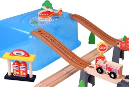 Sieć torów otacza miasto, co pozwala dzieciom planować trasy i tworzyć własne historie. Ruchomy pociąg może przewozić pasażerów i ładunki, zapewniając realistyczne scenariusze zabawy.