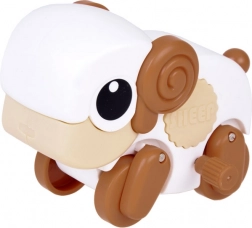 Jak to działa? Wystarczy chwycić swojego małego przyjaciela, obrócić kluczyk do nakręcania i postawić figurkę na podłodze. W mgnieniu oka zwierzątko ruszy na kółeczkach, zacznie poruszać głową i merdać ogonem.