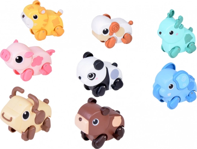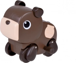 Mechanizm nakręcany pozwala dzieciom obserwować, jak zwierzątka szybko zjeżdżają i poruszają się.