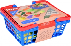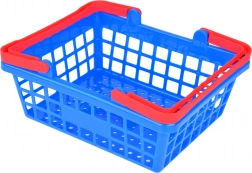 Niebiesko-czerwony plastikowy koszyk doskonale uzupełnia zestaw do zabawy i zapewnia łatwe przechowywanie wszystkich elementów.
