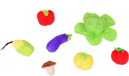 Zestaw zawiera szeroką gamę warzyw, takich jak marchew, pomidor, bakłażan i wiele innych, które przyciągają uwagę swoimi kolorami i kształtami.