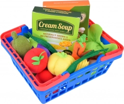 W koszyku znajdziesz różne warzywne elementy i dodatki, wiernie zaprojektowane tak, aby przypominać prawdziwe produkty spożywcze. Ta zabawa pomaga dzieciom poznawać nazwy warzyw oraz ich zastosowanie w kuchni.