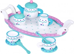 Drewniany zestaw do herbaty zachęca dzieci do odgrywania ról, rozwijając ich kreatywność i umiejętności społeczne.