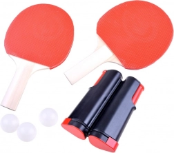 Zawiera wszystko, czego potrzeba do natychmiastowej gry – rozciąganą siatkę, dwie rakietki i trzy piłeczki.