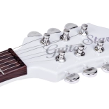 Dziecięca elektryczna gitara w eleganckim białym kolorze oferuje realistyczny wygląd, metalowe struny oraz dwa tryby gry – aktywne struny i odtwarzanie melodii. Idealna do rozwijania kreatywności i wyobraźni muzycznej, świetny wybór jako prezent dla małych muzyków.