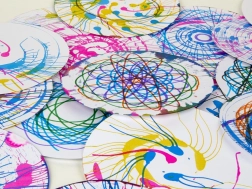 - 49 elementów – zawiera kolorowe pisaki, farby, obrotową platformę oraz szablony do spirografu.