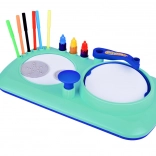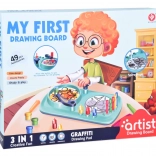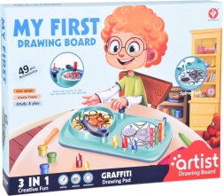 My First Drawing Board łączy zabawę z edukacją, pozwalając rozwijać wyobraźnię i małą motorykę dzieci. Dzięki temu zestawowi każdy mały artysta może tworzyć wyjątkowe rysunki i wzory przy użyciu farb lub pisaków.