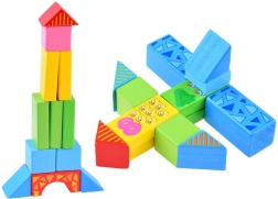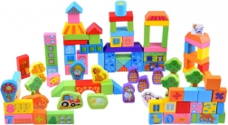 Klocki są wykonane z wysokiej jakości drewna i pokryte atrakcyjnymi kolorami i grafiką, co gwarantuje długotrwałą odporność i radość z zabawy.