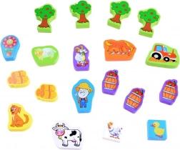 Nasze kolorowe drewniane klocki Farma to idealna zabawka dla dzieci od 3 lat. Dzięki 100 różnorodnym elementom dzieci mogą budować różne struktury, od budynków po farmy, co wspiera ich kreatywność i rozwój wyobraźni.