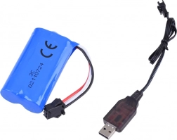 W zestawie znajduje się wydajny akumulator 7,4 V oraz ładowarka USB. Akumulator jest bezpiecznie umieszczony pod podwoziem, dzięki czemu wymiana i ładowanie są szybkie i wygodne.