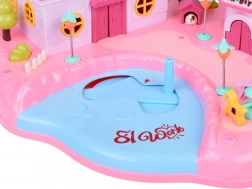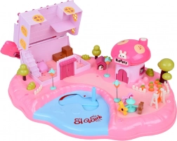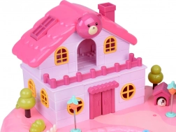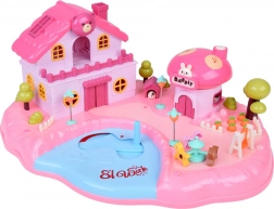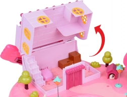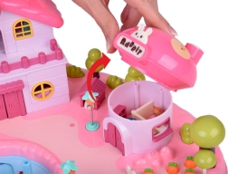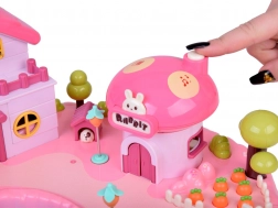 Domek oferuje wielopoziomowe wnętrze ze scenkami do codziennej zabawy: przytulna sypialnia z łóżkiem, otwierana szafa, łazienka z wanną i umywalką, kuchnia z lodówką oraz toaletka. Świetlne i dźwiękowe efekty uruchamiane przyciskami potęgują atmosferę zabawy, a podświetlany napis RABBIT reaguje w rytm melodii.