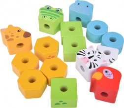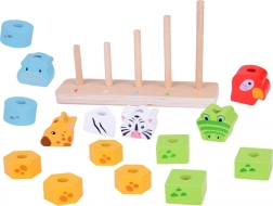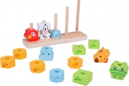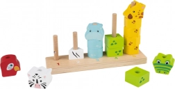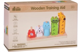 Ta wysokiej jakości drewniana gra do układania łączy zabawę z nauką. Dzieci układają kolorowe elementy i tworzą zwierzątka w kolejności od najmniejszego do największego, przy czym w naturalny sposób opanowują liczenie 1–5, rozpoznawanie kolorów i kształtów oraz trenują koordynację oko‑ręka. Elastyczne kołki w podstawie zwiększają bezpieczeństwo podczas zabawy.