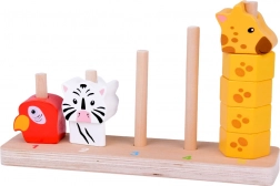 - 5 zwierzątek: papuga (1 element), zebra (2 elementy), hipopotam (3 elementy), krokodyl (4 elementy), żyrafa (5 elementów)