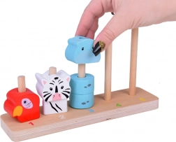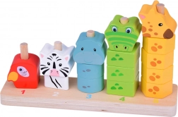 Kolorowa drewniana układanka ze zwierzątkami wspiera naukę kolorów, kształtów i liczb 1–5 oraz rozwija małą motorykę i myślenie logiczne. Ponumerowana podstawa i stopniowe układanie zwierzątek czynią z tej zabawki zabawną i bezpieczną pomoc edukacyjną dla dzieci od 3 lat.