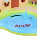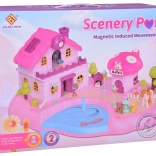Ukryta indukcja magnetyczna i drążek sterujący umożliwiają płynne przesuwanie figurek po niebieskim stawie i całej scenerii. Dzieci ćwiczą koordynację, a jednocześnie odkrywają zasady magnetyzmu.