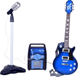 - Elektryczna gitara (niebieska), statyw na mikrofon z mikrofonem, wzmacniacz, pasek do gitary, przewód jack