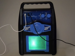Przenośny wzmacniacz „Guitar Star” umożliwia odtwarzanie podkładów z MP3, ma pokrętła sterujące oraz kolorowo podświetlaną kratkę, dzięki czemu występ wygląda efektownie.