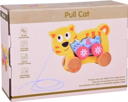 Ta drewniana kocia rodzinka do ciągnięcia to idealny towarzysz pierwszych kroków. Większa kotka ma w korpusie otwór ułatwiający chwytanie, przymocowany sznurek i stabilne kółka. Mniejsze kocię wiernie podąża, co sprawia dzieciom radość z ruchu i wzmacnia ich naturalną ciekawość.