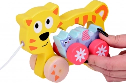 Zabawka wykonana jest z trwałego drewna w pastelowych kolorach, które przyciągają wzrok, ale nie rozpraszają. Świetnie sprawdzi się jako prezent dla maluchów – zapewnia zabawę, wspiera równowagę, koordynację oko–ręka oraz uczy ciągnięcia i prowadzenia zabawki we właściwym kierunku.