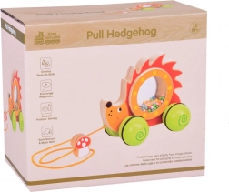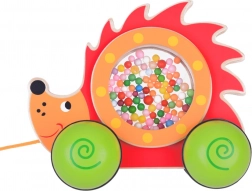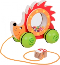 Uroczy drewniany jeżyk na kółkach z przezroczystym bębenkiem pełnym kuleczek to idealny towarzysz pierwszych kroków. Podczas ciągnięcia kuleczki w brzuszku wesoło się kręcą i grzechoczą, co motywuje dzieci do ruchu. Zabawka ma stabilną konstrukcję, nietoksyczne farby oraz praktyczny sznureczek z muchomorem dla łatwego prowadzenia.