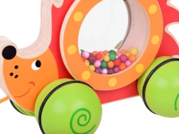 - Zabawka do ciągnięcia na kółkach z grzechoczącymi kuleczkami