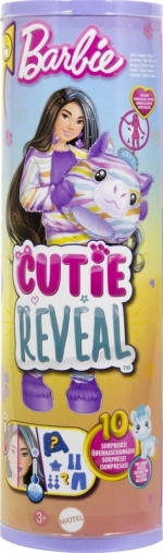 Lalka BARBIE Cutie Reveal z serii „Słodkie sny” łączy mięciutki pluszowy kostium z modową zabawą. Kolorowe przebranie zebry zamienisz w stylowe ubranka – w tym dwustronną kurtkę z kwiatowym nadrukiem i efektem tęczowej zebrzej skóry. W opakowaniu czekają też buty, szorty i biżuteria do nieskończonego miksowania stylów.