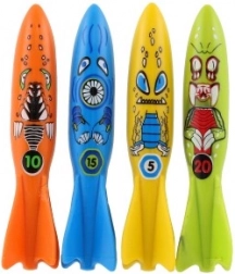 Lekki i trwały model torpeda do nurkowania został zaprojektowany tak, aby po wrzuceniu do wody płynnie opadał i był łatwo widoczny dzięki intensywnym kolorom. Motywuje dzieci do doskonalenia umiejętności pływackich, treningu nurkowania na wstrzymanym oddechu oraz koordynacji ruchowej.
