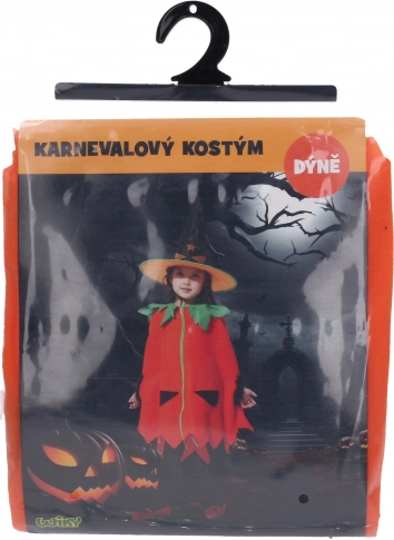 Uroczy i łatwy do założenia kostium karnawałowy dyni dla dzieci o wzroście 110–120 cm. W zestawie płaszcz i kapelusz, idealny na karnawał, Halloween oraz dziecięce przyjęcia.
