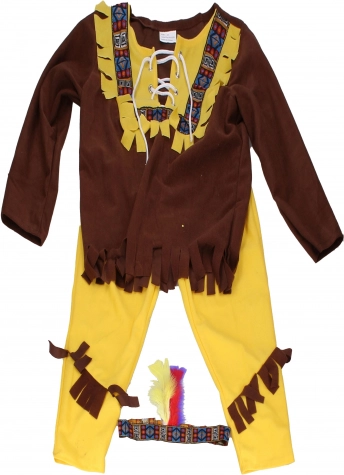 Dziecięcy kostium karnawałowy Indianina w rozmiarze M dla wzrostu 110–120 cm ucieszy małych poszukiwaczy przygód. Zawiera koszulę, spodnie i opaskę na głowę dla łatwego i szybkiego przebrania.