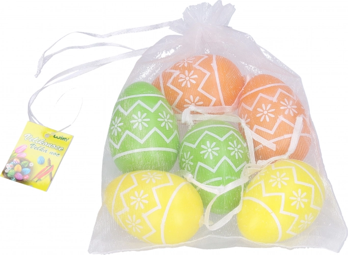 Opakowanie zawiera sześć jajek, które są umieszczone w eleganckim woreczku z organzy, co nie tylko ułatwia ich przechowywanie i przenoszenie, ale także gwarantuje stylową prezentację. Jajka wykonane są z trwałego plastiku, co zapewnia długą żywotność i możliwość wielokrotnego użycia. Są lekkie i łatwe w obsłudze, co docenią nawet dzieci od trzech lat.