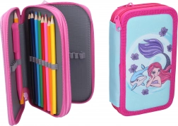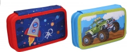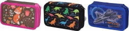 Wewnątrz piórnika znajdują się elastyczne gumowe uchwyty, które bezpiecznie utrzymują ołówki, kredki i długopis na swoim miejscu. W zestawie znajduje się podstawowy komplet przyborów, więc piórnik można zacząć używać od razu po rozpakowaniu. Kompaktowe wymiary 19,5 × 12 cm bez trudu mieszczą się do każdej szkolnej torby lub tornistra.