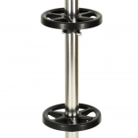 Solidna konstrukcja metalowego stojaka i cztery nogi na podstawie gwarantują stabilność nawet przy pełnym obciążeniu.