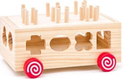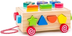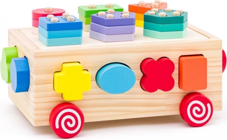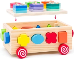 Ten drewniany wózek to idealna zabawka dla małych dzieci, która łączy zabawę z nauką. Wózek oferuje rozpoznawanie kształtów oraz rozwój małej motoryki dzięki kolorowym figurom geometrycznym, które dzieci mogą wkładać do odpowiadających im otworów.