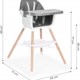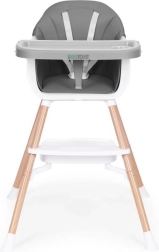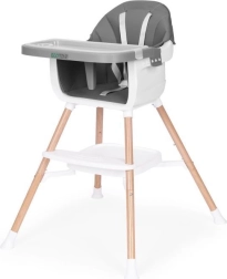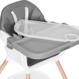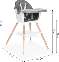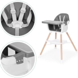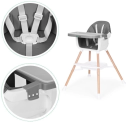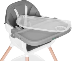 To nowoczesne krzesełko ułatwia wspólne posiłki – dziecko może siedzieć przy stole, obserwować, naśladować i przyswajać prawidłowe nawyki. Szeroka tacka służy nie tylko do jedzenia, ale też do zabawy, rysowania czy budowania z klocków, więc szybko stanie się ulubionym elementem dziecięcych mebli.