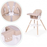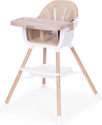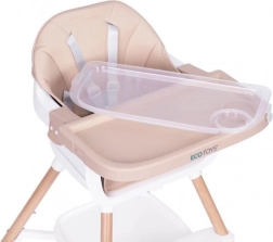Witaj przy stole! To krzesełko ułatwi wspólne posiłki od pierwszych stałych pokarmów. Szeroka tacka zapewnia miejsce na jedzenie, zabawę i twórczość, a miękkie, trwałe obicie z łatwej w czyszczeniu eko skóry gwarantuje wygodę i prostą pielęgnację. Nowoczesny wygląd pasuje do każdego wnętrza.